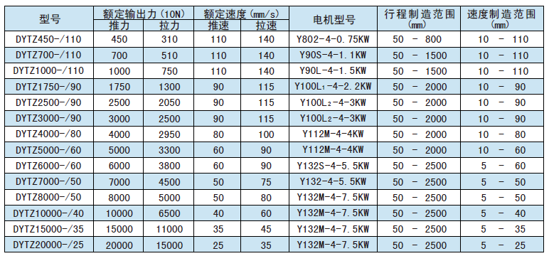 某一場所需要一台整體直式的電液推杆,要求電機防爆,其最大推力為1KN,行程500mm, 最大(dà)速度110mm/s,使用角度向(xiàng)下推,那麽所選電液推杆的標準型號為:DYTZB1000-500/110-X